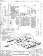 Remarques :COPIE DIAZO. INSTALLATIONS DE LA COMPAGNIE SUR LA RUE LANDSDOWNE (DEVENUE GRANDES-FOURCHES SUD). LES 27 BATIMENTS SONT PRESENTES, VUS EN PLAN ET VUS EN COUPE, ET EN AXONOMETRIQUE. UNE FENETRE PRESENTE LES BATIMENTS DES ENTREPRISES VOISINES SIT...