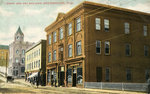 Description :A GAUCHE, UNE PARTIE DE LA FACADE DE LA BANQUE DES CANTONS DE L'EST, BATIMENT DE STYLE SECOND EMPIRE, UNE PARTIE DE L'EDIFICE DU BUREAU DE POSTE ET AUSSI UN ANGLE DU BATIMENT DE LA CIE D'ASSURANCES SHERBROOKE ET STANSTEAD AVEC SA TOURELLE. A ...