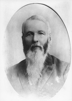 Description :CHARLES BROOKS, HOMME A TRES LONGUES BARBE ET MOUSTACHE EST PHOTOGRAPHIE EN GROS PLAN DANS UN OVALE.