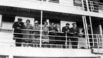 Description :GROUPE D'AMIS SUR LA PASSERELLE D'UN BATEAU A L'OCCASION D'UN VOYAGE ORGANISE AU SAGUENAY POUR LES ECHEVINS DE SHERBROOKE ET LEURS EPOUSES