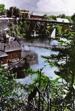 Description :VUE ARRIERE DE LA CENTRALE. LE BARRAGE, LE PONT WOLFE, AVEC LE PILIER DU PRECEDENT PONT ET LES MAISONS DE LA RUE BELVEDERE SONT VISIBLES.