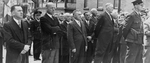 Description :AU COIN DES RUES GILLEPSIE ET BALL, DES NOTABLES SONT ARRETES ET RECITENT LE CHAPELET. 1ERE RANGEE, DE GAUCHE A DROITE: MAURICE GINGUES, J.S. BOURQUE, EUGENE THIBAULT, ALEXANDER-C. ROSS, MAIRE, ET ALBERT BRETON, SERGENT GARDE-CORPS DU MAIRE; 2...