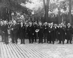Description :PHOTO DE 7 DES REPRESENTANTS OFFICIELS DE L'UNION DES ALLIANCES FRANCAISES DU CANADA DONT LEONIDAS BACHAND FAISAIT PARTIE