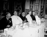 Description :DE GAUCHE A DROITE A LA TABLE D'HONNEUR: L.G. ROY, PERE DU JUBILAIRE; LE R.P. ROY; MGR PHILIPPE DESRANLEAU; LE T.P.R. GERARD-MARIE PARE, PROVINCIAL DE L'ORDRE DES DOMINICAINS; M. ARTHUR LEVEILLE, DU COMITE PAROISSIAL; L'HON. JOHN S. BOURQUE, M...