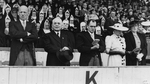 Description :SUR L'ESTRADE, ON VOIT PLUSIEURS DIGNITAIRES DONT MGR PHILIPPE DURANLEAU, (3E A PARTIR DE GAUCHE), M. ET MME ROGER GINGUES A L'EXTREME GAUCHE ET WENCESLAS .C. GENEST A L'EXTREME DROITE. DANS LA DEUXIEME RANGEE ON APERCOIT M. ET MME JOHN S. BOU...