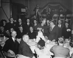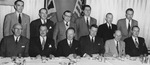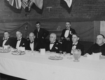 Description :ASSIS A LA TABLE D'HONNEUR, DE GAUCHE A DROITE, PREMIERE RANGEE: ARMAND FISETTE; WESLEY BRADLEY; JOHN S. BOURQUE; C.-B. HOWARD; GILL YOUNG(?); ?; MAURICE GINGUES ET GEORGE CARR. DEUXIEME RANGEE: PAUL LECLERC; OLIVA DEZIEL; EUGENE THIBAULT; CAR...