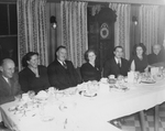 Description :DINER-CAUSERIE, DE GAUCHE A DROITE COMMENCANT PAR LE 2E: MGR IRA BOURASSA; MGR O-Z LETENDRE; LEONARD MORIN, PRESIDENT DU CONSEIL REGIONAL; MLLE JACQUELINE DESCOTEAUX; JOHN S. BOURQUE; MME BOURQUE ET J.H. LEMAY, JUGE. DEBOUT DANS LE MEME ORDRE:...