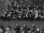 Description :1.1 VUE EN PLONGEE DES NOUVEAUX DIPLOMES DE L'UNIVERSITE BISHOP D'UN COTE ET DE L'AUTRE LES INVITES ET LES PARENTS. A LA 3E RANGEE DE CE COTE-CI, 1ERS SIEGES, JOHN S. BOURQUE ET DORIMENE BOURQUE; DERRIERE BOURQUE, DORAIS PANNETON. - 1.2 LES IN...
