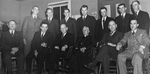 Description :ASSIS DE GAUCHE A DROITE: MME GERARD BRIEN; GERARD BRIEN; DORIMENE BOURQUE; JOHN S. BOURQUE; L'ABBE ALPHONSE RICHARD, CURE DE ST-ELIE; ROGER LAROSE, QUI REPRESENTE MAURICE GINGUES; ALPHONSE BELL. 2E RANGEE: JOSEPH LALIBERTE; JEAN MARTIN, AGRON...