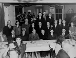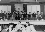 Description :BANQUET ANNUEL DE LA CLOTURE DE LA SAISON DE SKI ET REMISE DES TROPHEES AUX VAINQUEURS DES CONCOURS. 1ERE RANGEE, DE GAUCHE A DROITE: MME JAMES LOWE; DORIMENE BOURQUE; MME GEORGES SYLVESTRE; J.-G. D. BRYANT, MAIRE; GEORGES SYLVESTRE, PRESIDENT...