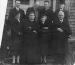 Description :LES INVITES D'HONNEUR PHOTOGRAPHIES A LA PORTE DU PRESBYTERES. PREMIERE RANGEE, DE GAUCHE A DROITE: MME ALBERT GOUDREAU DONT ON NE VOIT QUE LE MANTEAU; MME DORIMENE BOURQUE; L'ABBE PHILIPPE DESGRANGES, CURE; MME J.-P. MULLINS, H.L. AUGER. RANG...