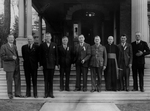 Sujet principal :DIGNITAIRES DEVANT LE CLUB SOCIAL LORS DE LA SEMAINE DE LA JEUNE CHAMBRE DE COMMERCE