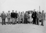 Description :DE GAUCHE A DROITE DEVANT L'AVION: CARL CAMIRAND; LUCIEN DUGRE; MARCEL BOURQUE; GUY CREPEAU; LE NOTAIRE CHENIER PICARD; ARMAND CREPEAU; MAURICE DUPLESSIS; YVETTE BOURQUE; JOHN BASSET JUNIOR; ROLAND DUGRE ET ARMAND NADEAU.