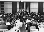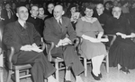 Description :PHOTO PRISE DE DEVANT DE LA SALLE DERRIERE LA CHORALE. ON VOIT UNE FOULE ASSISE EN TRAIN D'ECOUTER LA CHORALE. 1ERE RANGEE, DE GAUCHE A DROITE: DR LASALLE LABERGE, SPECIALISTE DE LA TUBERCULOSE; DORIMENE BOURQUE ET LE 4E A PARTIR DE GAUCHE: JO...