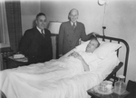 Description :ALPHONSE TRUDEAU ET JOHN S. BOURQUE AUPRES D'UN MALADE: DONAT BERNARD, EMPLOYE MUNICIPAL AU SERVICE DU GAZ ET DE L'ELECTRICITE.
