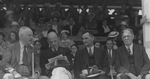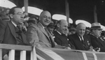 Description :ASSIS A LA LOGE D'HONNEUR, DE GAUCHE A DROITE: ARMAND ROUSSEAU, REPRESENTANT DE MAURICE GINGUES; LEON BALCER, MINISTRE FEDERAL; JOHN S. BOURQUE ET MARCUS TRENHOLM ARMITAGE, MAIRE.