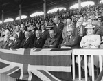 Description :DANS LA LOGE PRINCIPALE DE LA GRANDE ESTRADE, DE GAUCHE A DROITE: J.-A. STE-MARIE, REGISSEUR DE LA FERME EXPERIMENTALE DE LENNOXVILLE; J.-H. DELISLE, MINISTRE D'ETAT, DEPUTE DE MONTREAL-STE-MARIE; JOHN S. BOURQUE, MINISTRE DES TERRES ET FORETS...