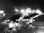 Description :VUE EN PLONGEE DES KIOSQUES DE L'EXPOSITION DE SHERBROOKE LA NUIT. AU FOND A DROITE, ON APERCOIT LES MANEGES ILLUMINES DONT LA GRANDE ROUE ET A DROITE AU CENTRE, IL Y A UNE PARTIE DU STATIONNEMENT.