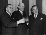 Description :DE GAUCHE A DROITE: MAURICE GINGUES; JOHN S. BOURQUE ET ALPHONSE TRUDEAU PROBABLEMENT A L'HOTEL NEW SHERBROOKE.