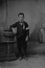 Notes :A L'OCCASION DE SA PREMIERE COMMUNION, CHARLES SIGOUIN EST PHOTOGRAPHIE AVEC LE BRASSARD DE CIRCONSTANCE
