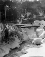 Sujets :PAYSAGES NATURELS; COURS D'EAU; RIVIERE MAGOG; EDIFICES COMMERCIAUX ET INDUSTRIELS; TEXTILE, VETEMENT, CUIR ET ACCESSOIRES; BOIS, PATE ET PAPIER; G.G BRYANT CO; BARRAGES; BARRAGE #2; HYDRO-ELECTRICITE