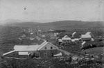 Description :VUE SUR LE VILLAGE DE PIOPOLIS. ON VOIT PLUSIEURS MAISONS ET L'ARRIERE DE L'EGLISE DU VILLAGE.
