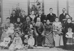 Description :LE GRAND-PERE EST AU CENTRE DE LA PHOTO. AUTOUR DE LUI, ENFANTS ET PETITS-ENFANTS. ILS SONT INSTALLES DEVANT UNE MAISON, MAIS ON NE LA VOIT QUE TRES PEU.