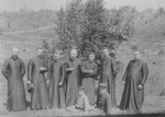 Description :GROUPE DE SEPT PRETRES ET DEUX ENFANTS PHOTOGRAPHIES EN PLEINE NATURE A ST-AUGUSTIN DE WOBURN.