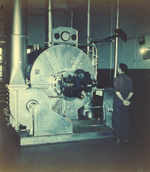 Description :MONSIEUR BERNIER SURVEILLE LA GENERATRICE A VAPEUR. EN PLUS DE DONNER DE L'ENERGIE A TOUTE L'USINE, ELLE ETAIT AUSSI TRES UTILE POUR LE DEPARTEMEENT DE TEINTURE.
