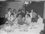 Description :UN GROUPE DE FEMMES EST PHOTOGRAPHIE. IL SEMBLE QU'IL S'AGISSE DE L'ANNIVERSAIRE DE L'UNE D'ELLES. SUR LA RANGEE DES FEMMES ASSISES, ON PEUT PEUT-ETRE AVANCER QU'IL S'AGISSENT DE ROSANNA BONNALLIE (1ere A GAUCHE), EDITH BONNALLIE (3e A GAUCHE)...