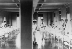 Description :VUE SUR UNE SALLE D'HOPITAL. ON REMARQUE LES MALADES COUCHES DANS UN DORTOIR RECEVANT DES DOCTEURS. ON APERCOIT DES INFIRMIERES.
