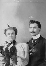 Description :PHOTO EN BUSTE D'ARTHUR BLOUIN ET DE SA FEMME ERNESTINE BOUDREAU A LEUR MARIAGE. LA MARIEE PORTE UNE ROBE A MANCHES BOUFFANTES.