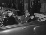 Description :ARMAND NADEAU ET LE CHANOINE BIRON SONT ASSIS DANS UNE AUTOMOBILE AVEC UN CHAUFFEUR A L'AVANT. IL Y A PLUSIEURS PERSONNES PLUS LOIN A L'ARRIERE.