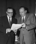 Lieux :GROUPES; POLITICIENS; EVERETT NICOL; PAUL DESRUISSEAUX; ARMAND NADEAU; CARL CAMIRAND; J.M.JEANSON; MARCEL SAVARD; PAUL GERVAIS; ANTONIO PINARD; A.ROY; ROBERT GAUTHIER; G.BERARD.