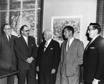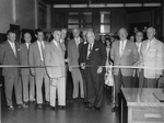 Description :CHARLES B.HOWARD COUPE UN RUBAN. IL EST ENTOURE DE PLUSIEURS PERSONNALITES DE LA COMPAGNIE. A L'ARRIERE ON APERCOIT LES MEMBRES DU PERSONNEL.