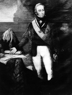Description :PORTRAIT DE SIR JOHN COAPE SHERBROOKE DEBOUT, VETU D'UN UNIFORME ET DESIGNANT DE LA MAINS DES PAPIERS.