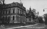 Description :VUE DE LA FACADE DE LA RESIDENCE DE H.B.BROWN SUR LA RUE BANK, AINSI QU'UNE PARTIE DE LA RESIDENCE DE G.E. RIOUX, AU COIN DES RUES BANK ET WILLIAM.