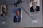 Description :MOSAIQUE SUR FOND BLEU, AU CENTRE EN HAUT, ON VOIT UN PIANO NOIR. A GAUCHE, ARTHUR BLOUIN, FONDATEUR. AU CENTRE, PIERRE BLOUIN, DIRECTEUR. A DROITE, ROBERT BLOUIN, PRESIDENT-DIRECTEUR. EN BAS A GAUCHE, 1898 ET A DROITE 1985.