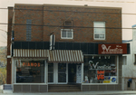Description :EDIFICE DANS LEQUEL LE MAGASIN EST SITUE. IL A 2 ETAGES ET EST EN BRIQUE ROUGE. IL Y A DES AUVENTS AU COTE GAUCHE. A GAUCHE, ROBERT BLOUIN PIANOS ET A DROITE, LE MAGASIN VINESTRIE. - 1.2 VUE DE BIAIS, ON VOIT L'ENSEIGNE PUBLICITAIRE ROBERT BLO...