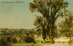 Description :A DROITE, UNE PETITE ROUTE DE TERRE AU MILIEU DE BEAUX ARBRES FEUILLUS. A GAUCHE, DES BOSQUETS A TRAVERS LESQUELS ON APERCOIT QUELQUES TOITS DE BATIMENTS.