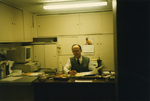 Description :PIERRE BLOUIN ASSIS DANS SON BUREAU. 5.1 : ANCIEN BUREAU DE TRAVAIL. - 5.2 : NOUVEAU BUREAU DE TRAVAIL.