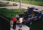 Description :PHOTOS MONTRANT LES ETAPES DU DEMENAGEMENT D'UN PIANO A QUEUE. ON VOIT PIERRE BLOUIN ET RENE DEBLOIS DEMENAGEUR ET SON EQUIPIER. - 6.1 : INSTALLATION DES PLANCHES POUR MONTER LE PIANO AU 2e ETAGE. - 6.3 A 6.7 : LE PIANO EST MONTE A L'APPARTEME...