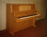 Description :PIANO DROIT A 3 PEDALES AVEC COUVERCLE EN BOIS NATUREL.
