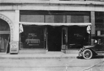 Description :VUE DU BAS DE L'EDIFICE SITUE AU 191 WELLINGTON SUD. VITRINE DANS LEQUELLE ON APERCOIT UN PIANO NOIR AVEC L'ECRITEAU "GOURLAY PIANOS". ARTHUR BLOUIN EST DEBOUT.