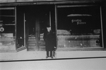Sujet principal :ARTHUR BLOUIN DEVANT LES VITRINES DE SON COMMERCE RUE WELLINGTON SUD