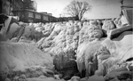 Description :VUE SUR LE BARRAGE NO 4 GLACE. EN AVANT, LE BATIMENT DE L'USINE KAYSER SITUE SUR LA RUE FRONTENAC A SHERBROOKE.
