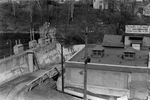 Description :VUE SUR UNE PARTIE DU BARRAGE NO 3 ET UNE PARTIE DU TOIT DE LA CENTRALE FRONTENAC A SHERBROOKE.