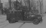 Description :UN CAMION A ECHELE DU DEPARTEMENT DU GAZ ET ELECTRICITE A SHERBROOKE.