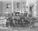 Description :SUR LE COTE DE LA MAISON DE LA FAMILLE BLOUIN. SUR LA RANGEE DU BAS: GISELE, ERNESTINE BOUDREAU-BLOUIN, LUCIEN, ARTHUR, JEANNE, CHARLES (LE GRAND-PERE), ROGER ET RENE. SUR LA SECONDE RANGEE: SE TROUVENT PHILIPPE, JOACHIM, THERESE, YVONNE, GERM...