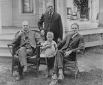 Description :DEVANT LA MAISON FAMILIALE. CHARLES BLOUIN, DEBOUT DERRIERE. ASSIS SUR UNE CHAISE EN OSIER: ARTHUR BLOUIN. A DROITE, TOUJOURS SUR UNE CHAISE EN OSIER, RENE BLOUIN. ENTRE LES DEUX HOMMES, GERARD BLOUIN. IL S'AGIT DE 4 GENERATIONS DE LA FAMILLE ...